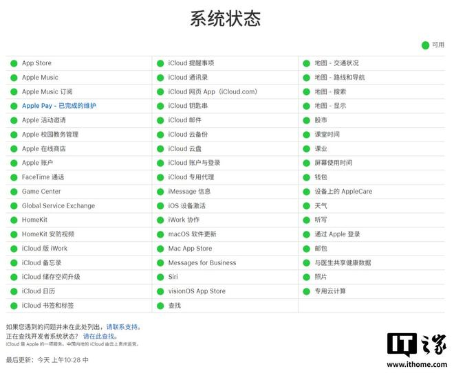 IT之家查询苹果系统状态页面,目前所有服务均显示可用。