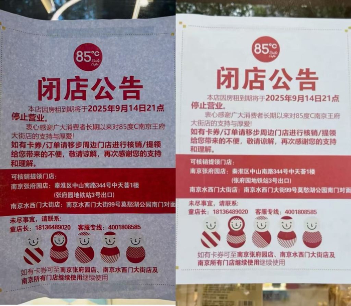 记者致电85度C南京一家暂未闭店的门店。店员称,已知晓南京新街口等店关闭的消息,主要原因是租金过高且租约到期,且新街口对面的小吃街也对生意造成了一定影响。工作人员还透露,公司目前正在南京寻找新址,计划开设新店。关于储值卡等事宜,各门店间已完成交接。消费者需保留好消费凭证,如有任何问题,可前往门店解决。