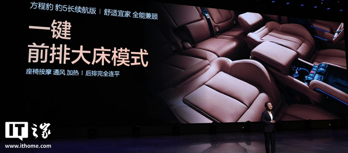 新车的座椅迎来升级,支持一键开启前排大床模式,还有智能防晕车模式。