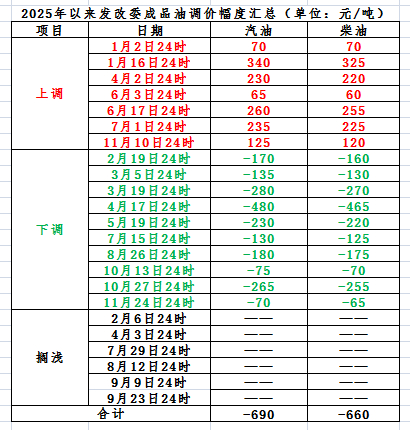 2025年以来,国内成品油零售限价已经历二十三轮调整窗口,分别为“七涨十跌六搁浅”。调价后,国内汽、柴油价格每吨较去年底分别下跌690元、660元。