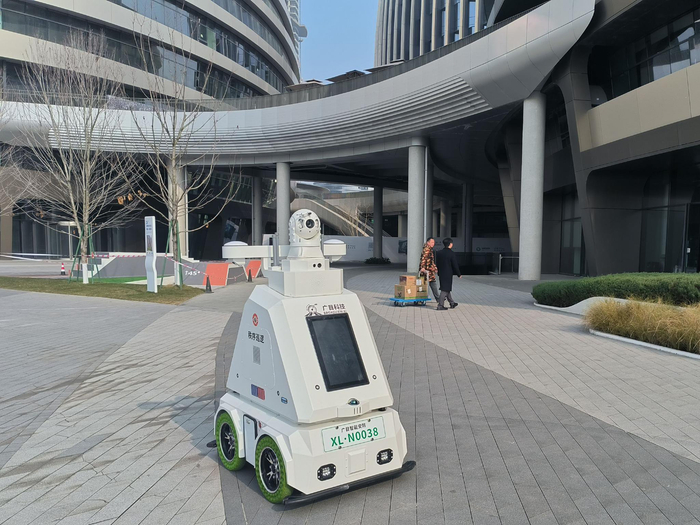 相比于2025年年初的机器人在春晚舞台上“转手绢”,现在的机器人已经走进更多的场景。在工程场景之外,还有很多有趣且与普通人密切相关的场景。在成都科创生态岛,记者见到了多台配送、巡逻机器人。一台越凡创新生产的商用配送机器人,能够顺利通过园区内的石板路、砂石路、减速带,自动通过屏蔽门,完成楼栋间“从工位到工位”的配送。园区内另一台巡逻机器人则能够自动完成巡逻,灵活监控园区内的各个角落。