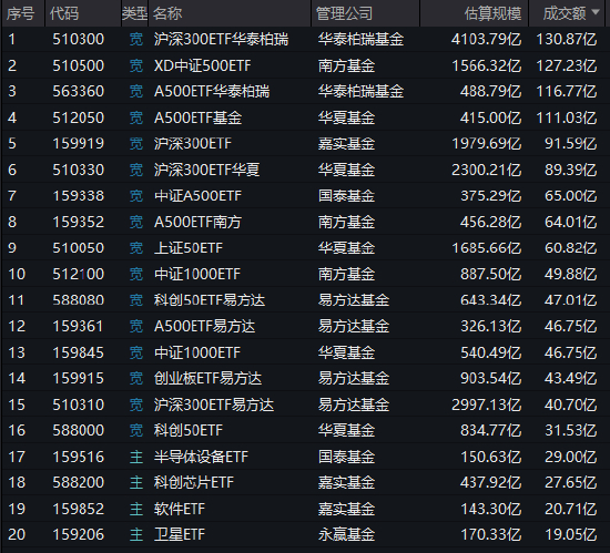 华泰柏瑞沪深300ETF、南方中证500ETF等持续放量,半日成交超100亿元!昨日华泰柏瑞沪深300ETF遭赎回200亿元