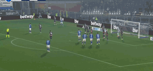 第10分钟,科莫左侧战术角球开出,巴图里纳送出精准传中,门前肯普夫抢点头槌破门,迈尼昂碰到皮球但没能完成扑救,科莫1比0领先。