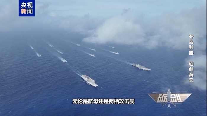 军事专家 曹卫东:无论是航母还是两栖攻击舰,它周边的配置都是相似或相同的,只是在具体完成不同海域或不同时间的军事任务时,它的数量有所增加或减少。比如说水下潜艇,有时候可能只有一艘,有的时候就需要两艘。在高强度作战的时候,可能就要有四五艘水面作战舰艇来进行护卫,而低强度作战时,可能就有两艘。