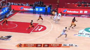 易边再战,李承耀篮下接对方失误打板命中,对方三分入网,亨特抛投得分,对方三分手感火热,庞峥麟带球上篮命中,对方连续内线造杀伤得分打停肯帝亚。暂停回来,亨特利用内线脚步取分,贾尔斯篮下轻取两分,刘正清切断对方进攻,贾尔斯领到一个违体,对方通过罚篮将比分迫近,刘泽希投篮命中,庞峥麟中距离跳投得手,肯帝亚通过耐心传导球助刘泽希远距离三分稳稳入网,肯帝亚犯满。亨特三分手起刀落。第三节结束,江苏肯帝亚以61:57领先天津先行者。