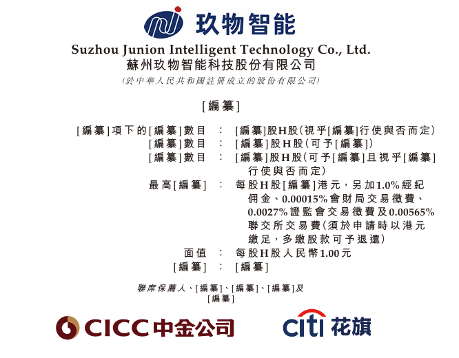 苏州玖物智能科技股份有限公司(简称“玖物智能”)的招股说明书。