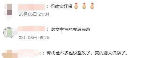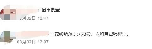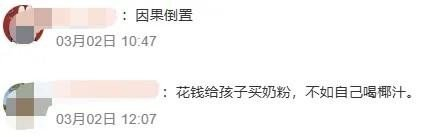 也有人讽刺调侃:“花钱给孩子买奶粉,不如自己喝椰汁”;“还是熟悉的配方,熟悉的味道。”