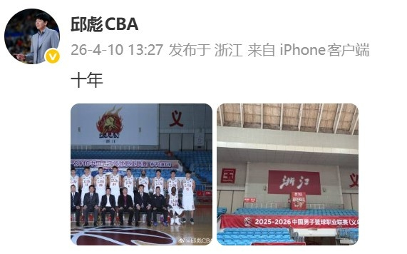 山东男篮主教练邱彪更新社媒,晒出一组十年前后的对比照。